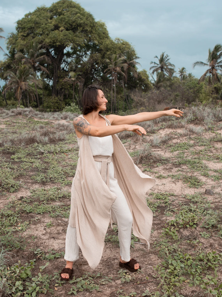 Natural Beige Boho Wrap Robe with Drawstring Closure Asymmetric Cape Breathable Summer Cover-Up for Autumn and Winter Outfits