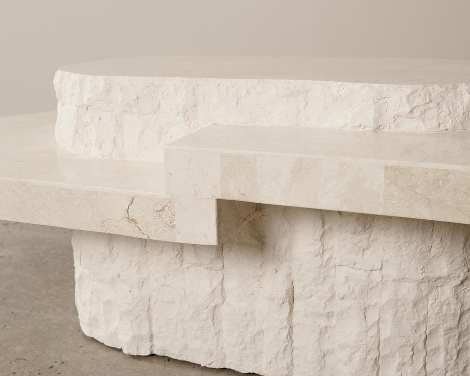 Natural Beige Travertine Rough Dining Apartment Table Modern Design Fire Resistant Handmade Luxury Wall Cladding Hospital