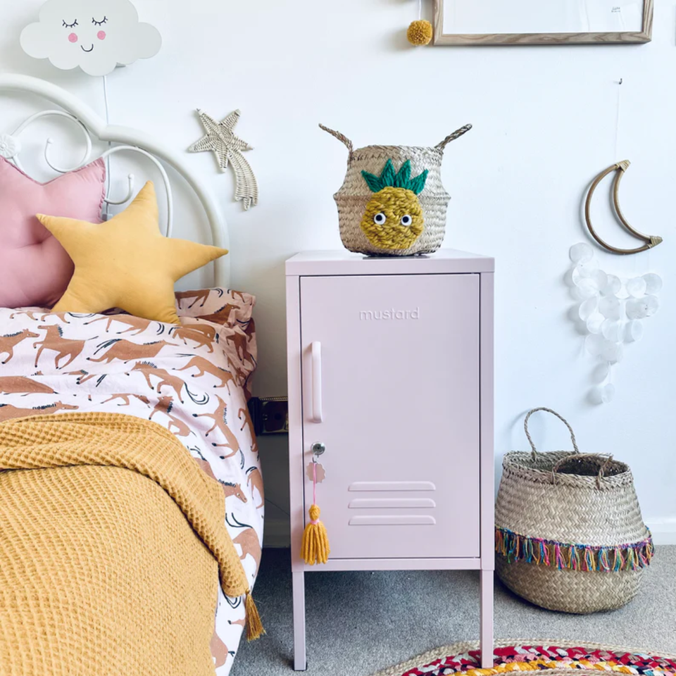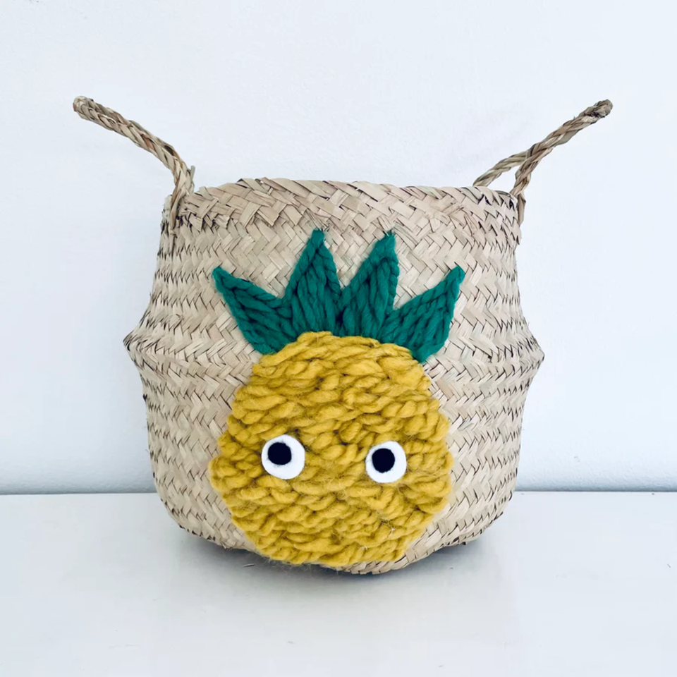 Natural Belly Seagrass Collapsible Laundry Basket Cute Yellow Green Pineapple Design For Kids Room Decoration Colorful Belly Bin