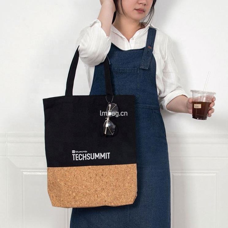 Product name:Natural Black Cotton Canvas And Cork Tote Bag For Women