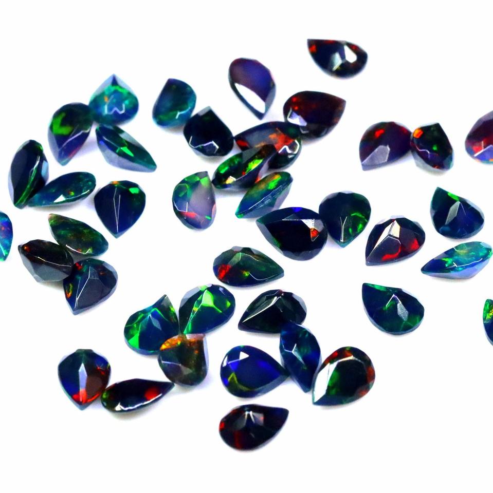 Product name:Natural Black Ethiopian Opal Pear Shape Faceted Gemstone