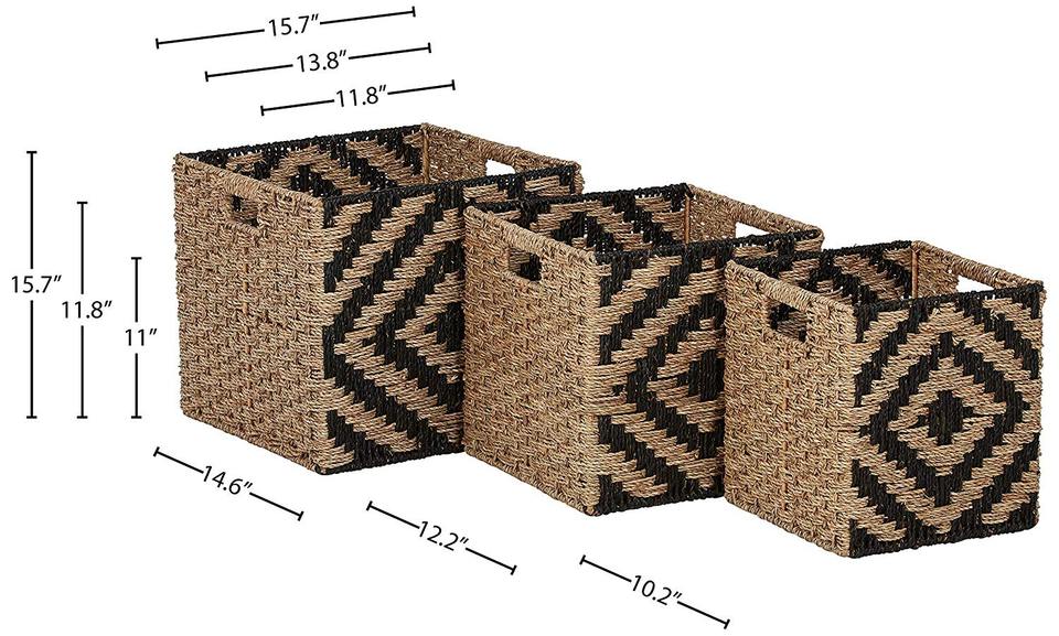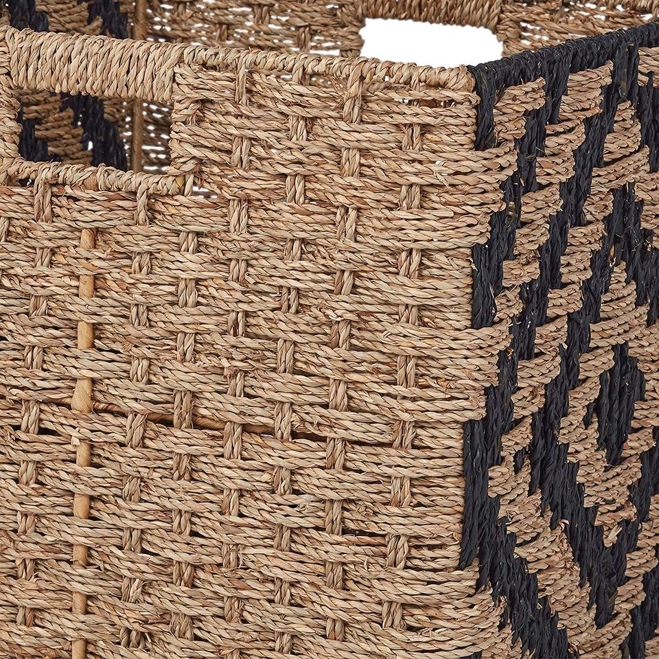 Natural Black Foldable Storage Basket Seagrass with Handles Storage Cube Box Straw Baskets Organizer for Desk Shelf Home Decor