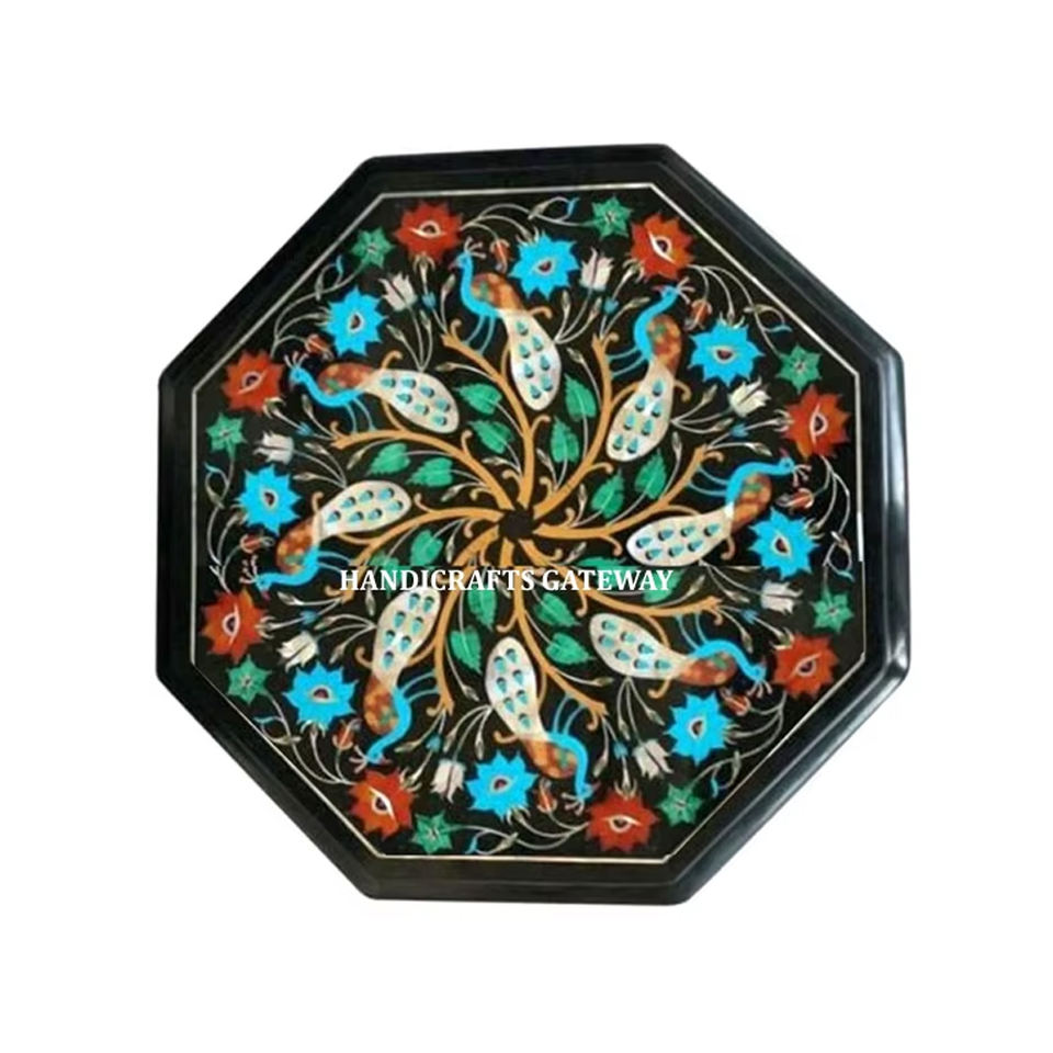Natural Black Marble Inlay Table Top Octagonal Shape Handmade Unique Design With Smooth And Glossy Surface Used For Coffee Table
