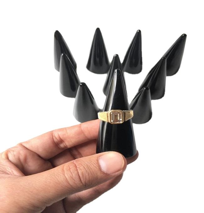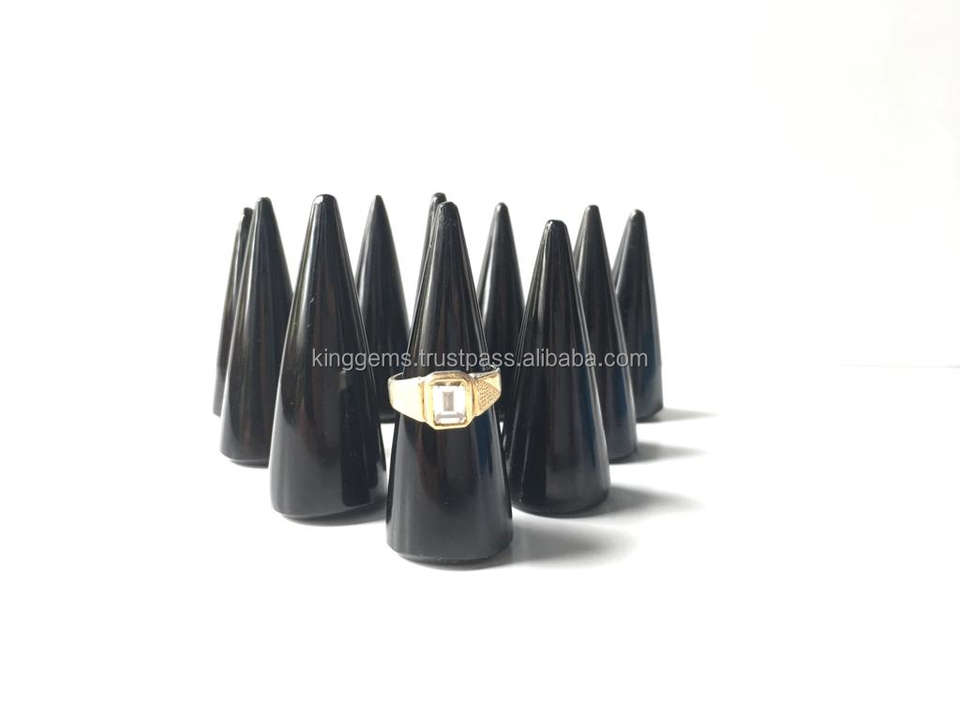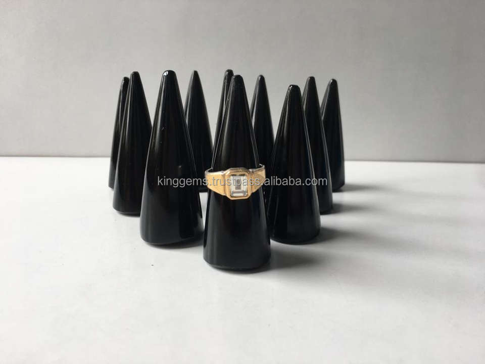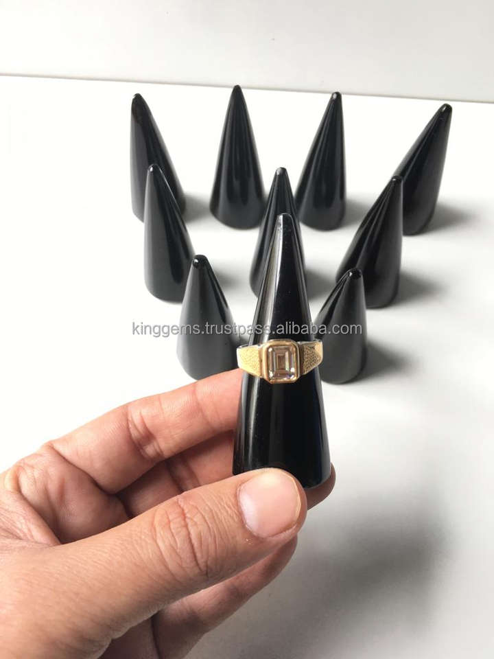 Natural Black Obsidian Feng Shui Carved Pencil Ring Holder | Crystal Ring Cone Stand | Gemstone Jewelry Display