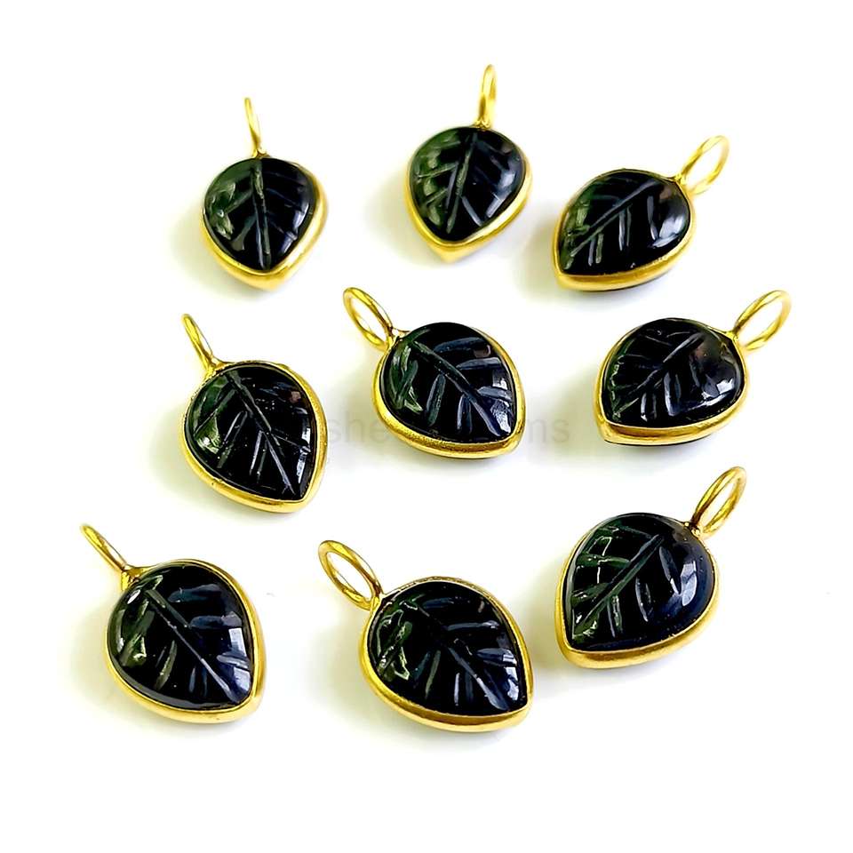 Natural Black Onyx 925 Silver Leaf Pendant Loose Stone Carved Leaf Charms For Jewelry Wholesale Gemstone Leaf Carvings In Bulk