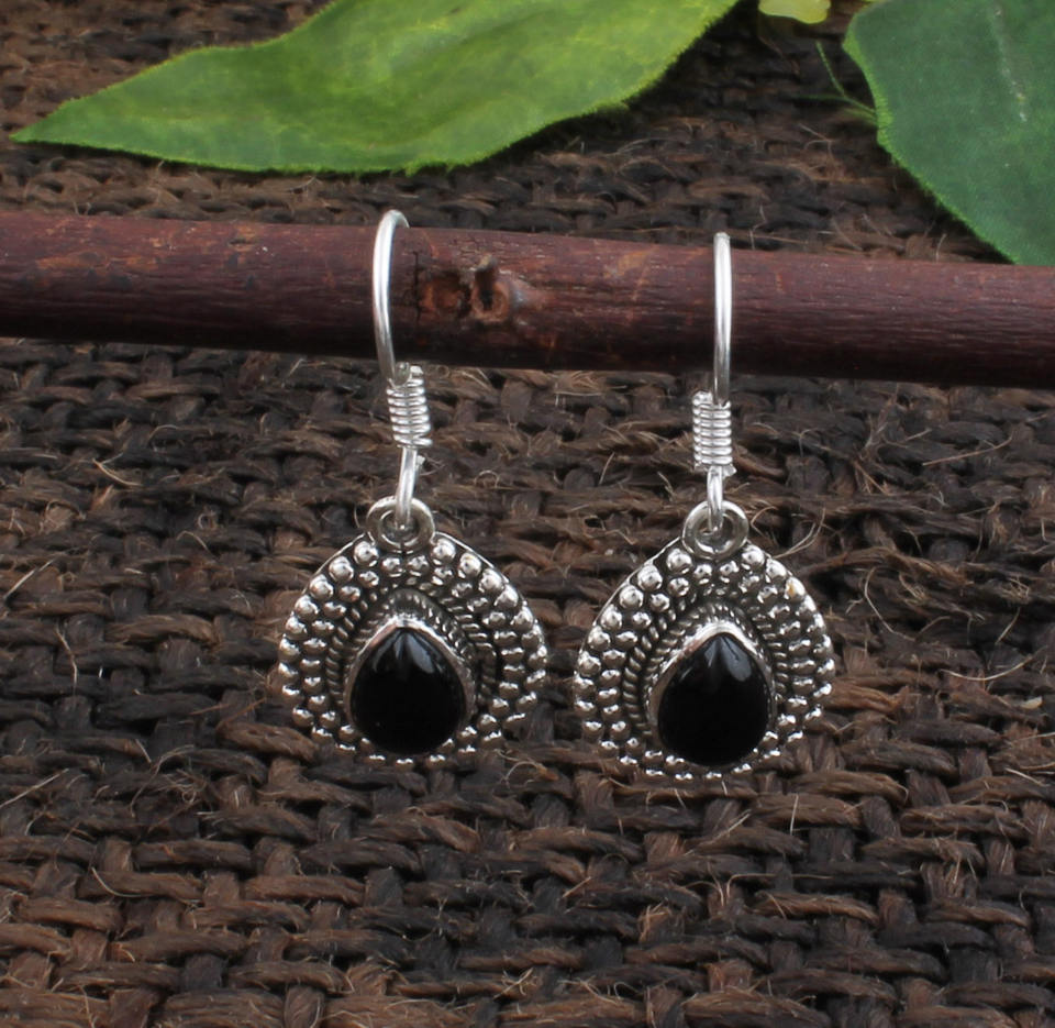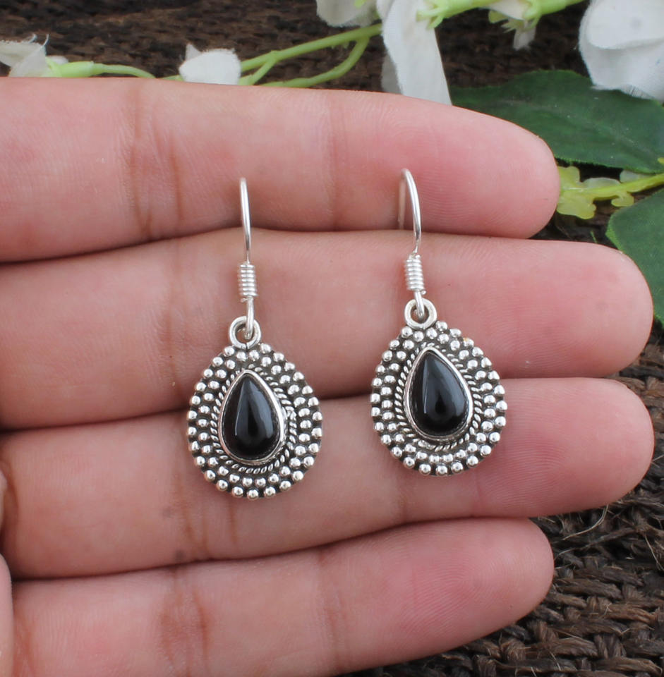 Natural Black Onyx Drop Earrings 925 Sterling Silver Minimalist Luxury Gift Jewelry Unisex