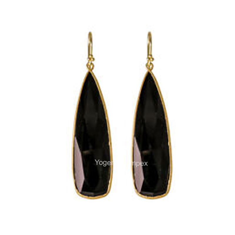 Natural Black Onyx Gemstone Drop Dangle Earrings 925 Sterling Silver Bezel N18K Gold Plated Trendy for Parties Gifts Wholesale