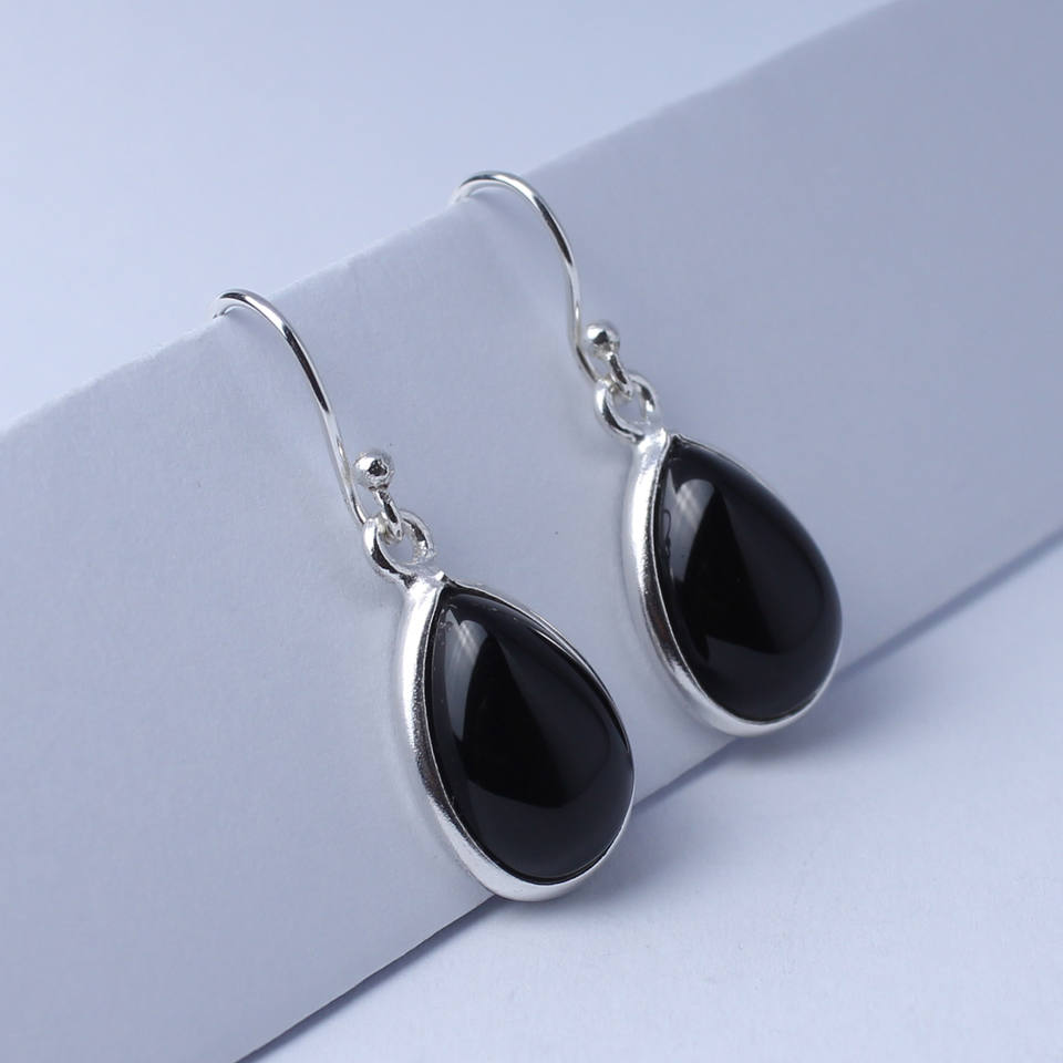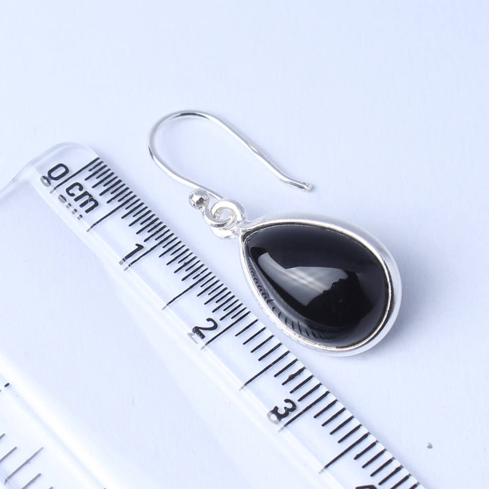 Natural Black Onyx Pear Cabochon Gemstone Earrings 925 Sterling Silver 10x14 mm for Women and Girls Handmade Indian Jewellery