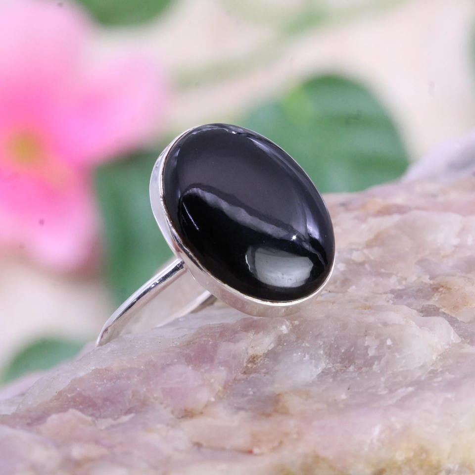 Natural Black Onyx Ring 925 Sterling Silver Onxy Gemstone Ring Onxy Women Handmade Silver Jewellery Promice Wedding Ring