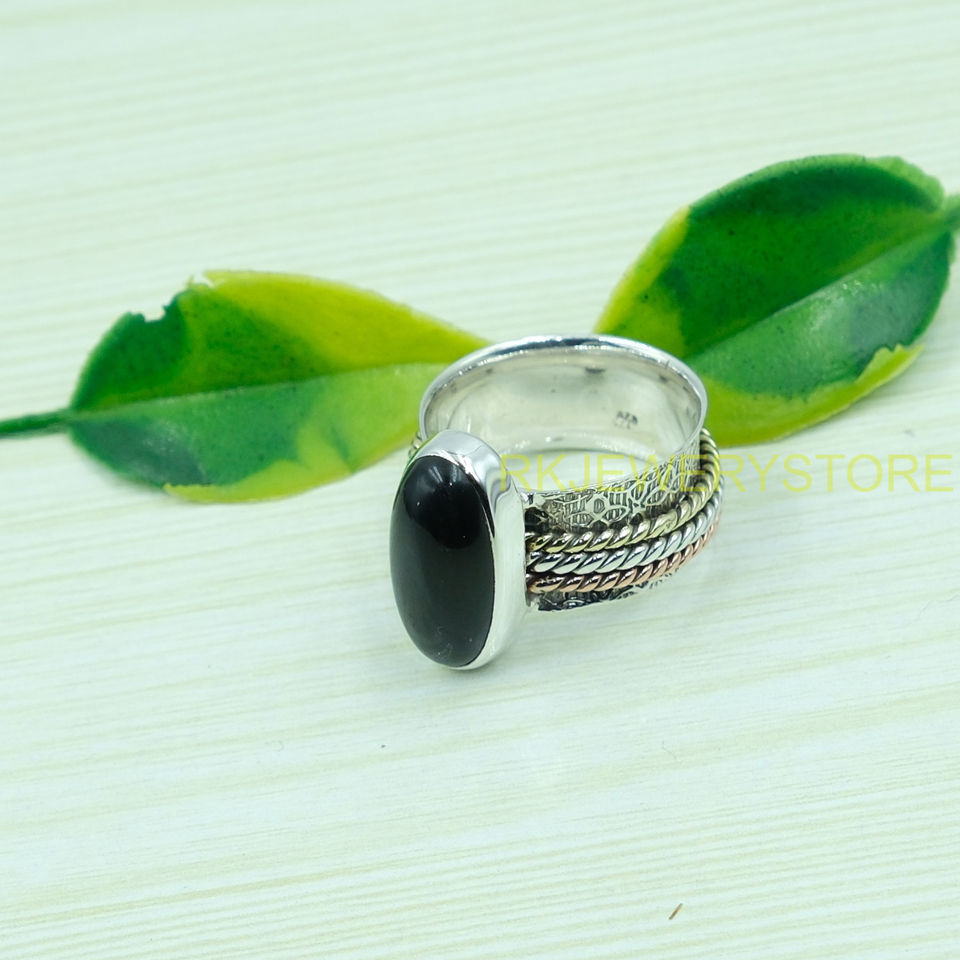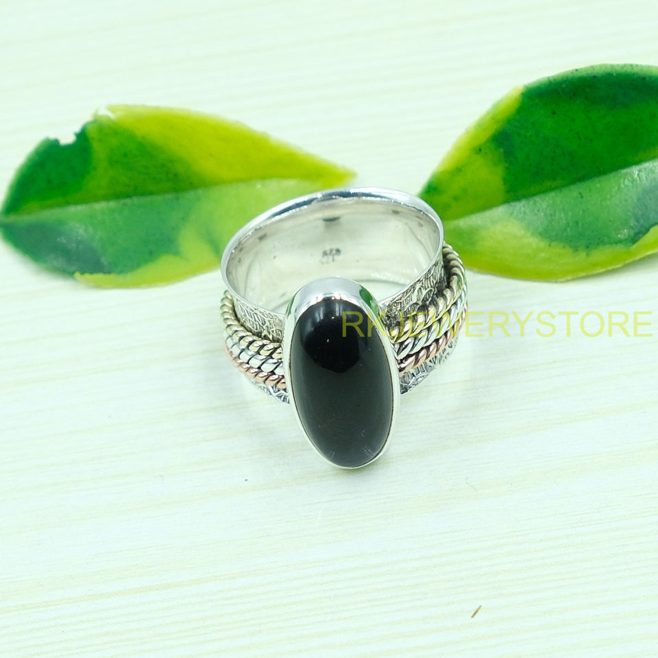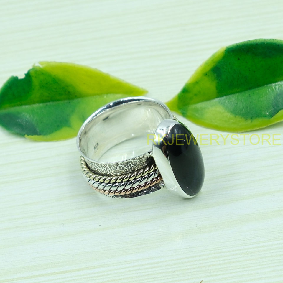 Natural Black Onyx Spinner Ring, Anxiety Ring, Pure 925 Sterling Silver Spinner Ring Hammered Ring With Brass And Copper Jewelry