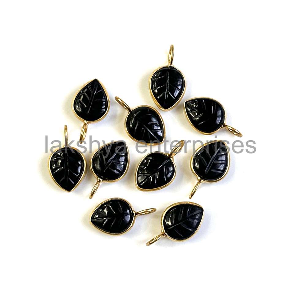 Product name:Natural Black Onyx Carved Leaf Pendant Charms