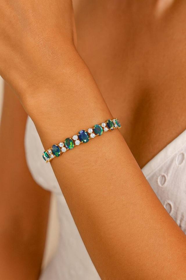 Keyword:Black Opal multi fire Tennis Glowing Expansive Bracelet Crafted