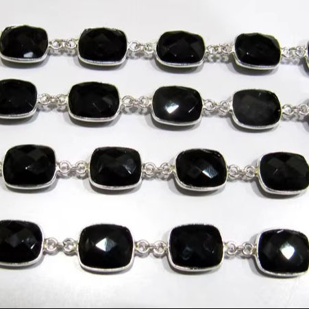 Natural Black Spinel 11x13mm Cushion Briolette Faceted Rectangle Bezel Connector Square Chain High Jewelry Making Made Brass