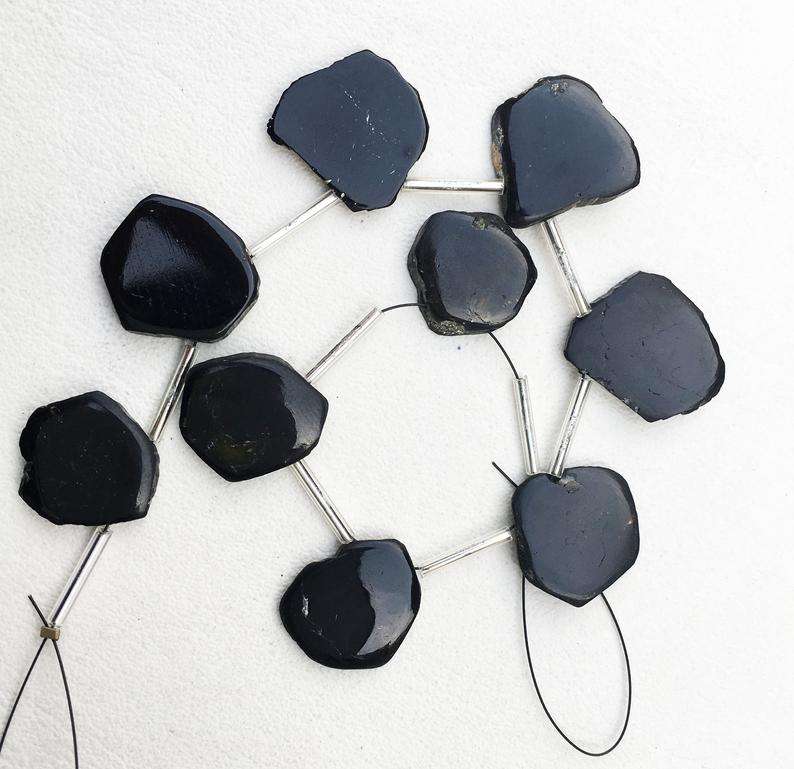 Wholesale 9-Piece Natural Black Tourmaline Gemstone Polished Rough Top Side Drill for Handmade Jewelry Loose Gemstones