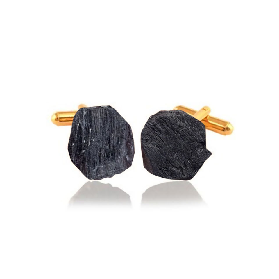 Natural Black Tourmaline Handmade Wedding Cufflinks for Groom 18K Gold & Silver Plating Birthstone Brass Material Gift