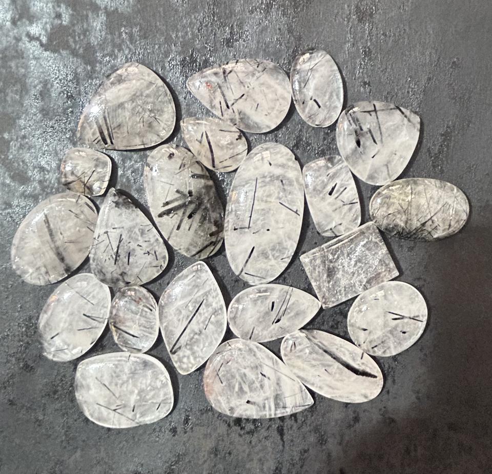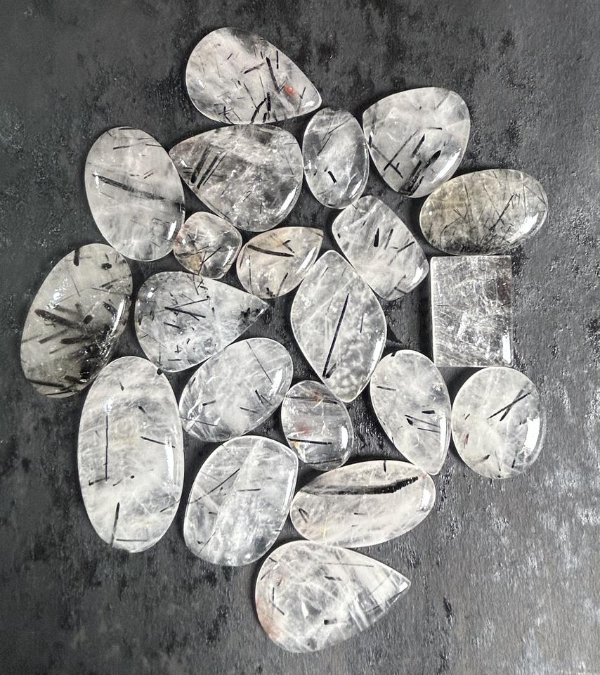Natural Black Tourmaline Oval Cut Cabochon Hair Crystal Point Loose Gems Wholesale Price for Jewellery Making Quartz,