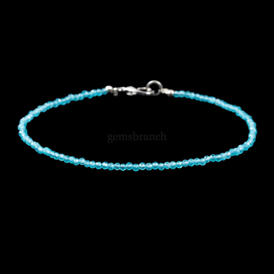 Natural Blue Apatite Beaded Bracelet Apatite Micro Faceted Round Gemstone Bracelet Healing Crystal Gift Jewelry For Women Bulk