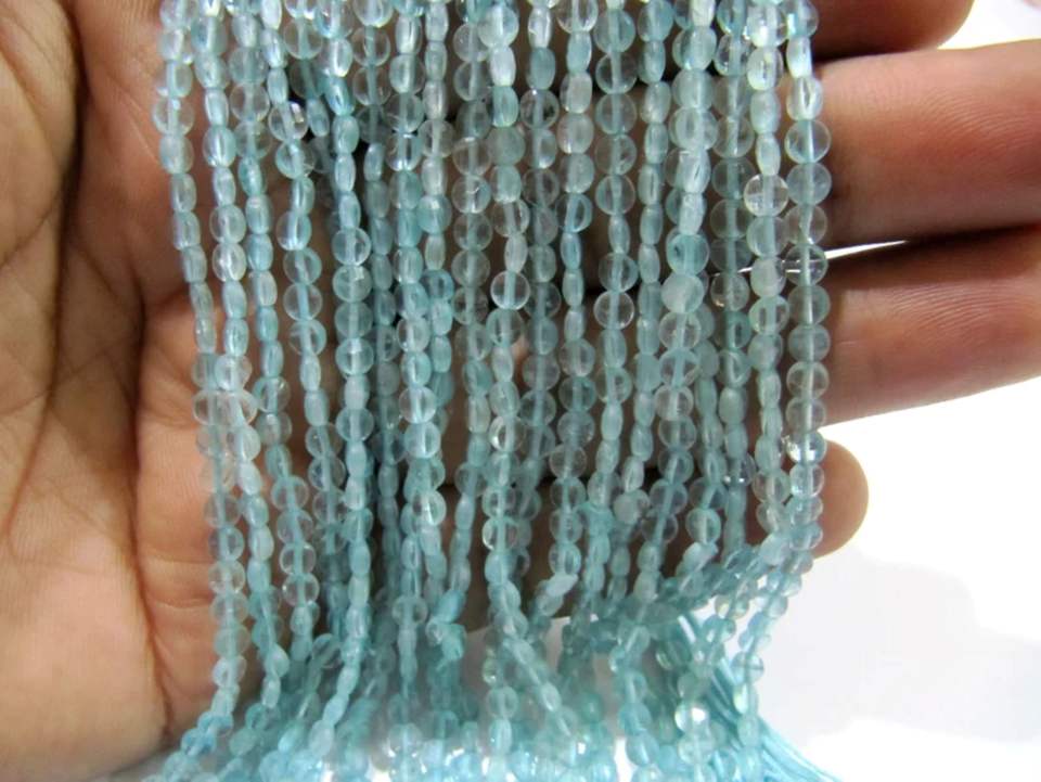 Natural Blue Apatite Faceted Coin-Shaped Briolette Beads 4mm Size 13 Inches Long Strand Stone Beads