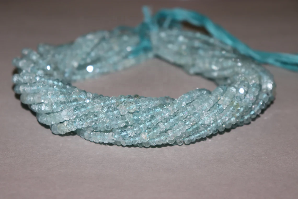 Natural Blue Aquamarine Faceted Rondelle Beads 4.5-5 mm 13 Inches Strand for Jewelry Making