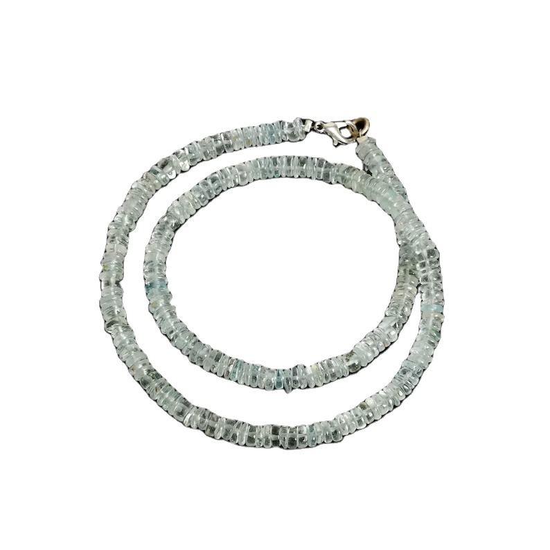 Natural Blue Aquamarine Smooth Heishi Tyre Trending Gemstones Beads Necklace Jewelry at Wholesale Best Price From Supplier