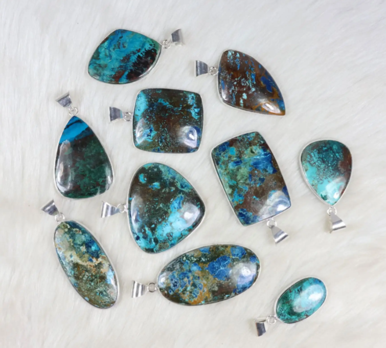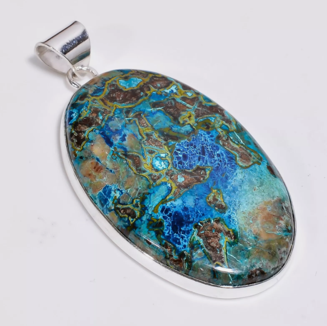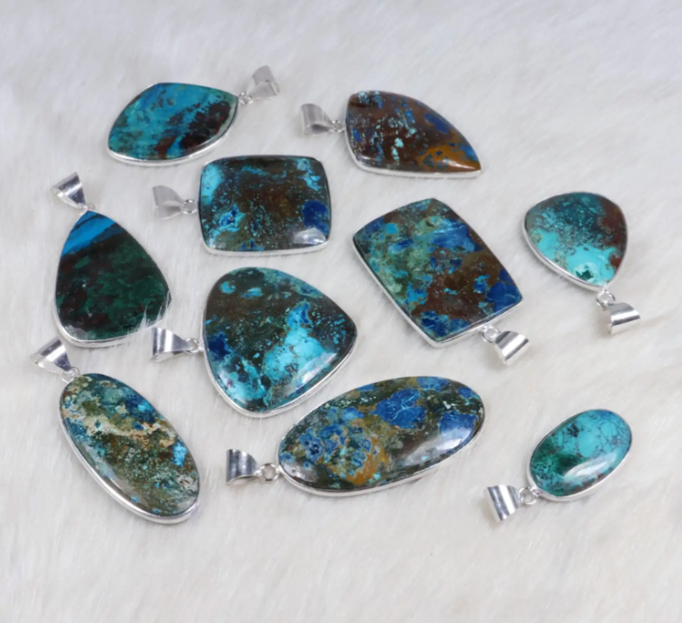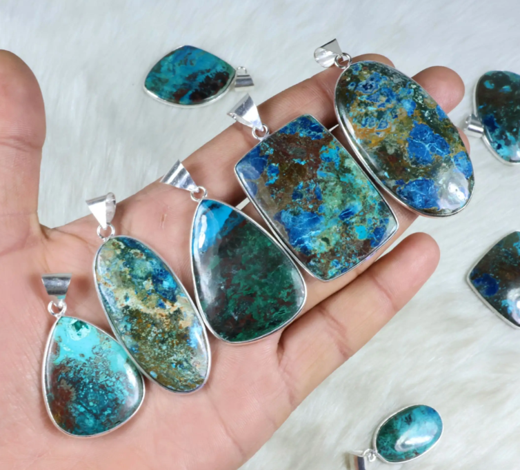 Natural Blue Azurite Bezel Pendant Sterling Silver Plated Pendant Wholesale Azurite Gemstone Pendant Bezel Necklace Jewellery