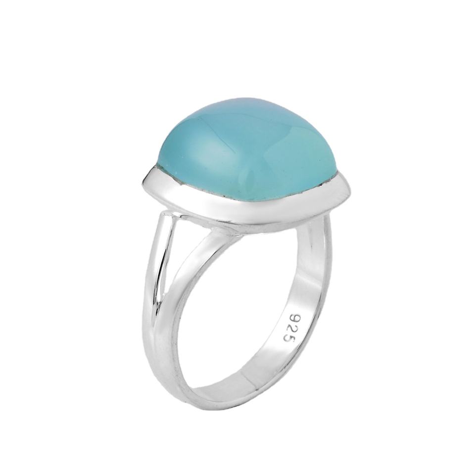 Natural Blue Chalcedony Gemstone Rings Solid 925 Sterling Silver Jewelry Eternity Vermeil Ring for Men and Women