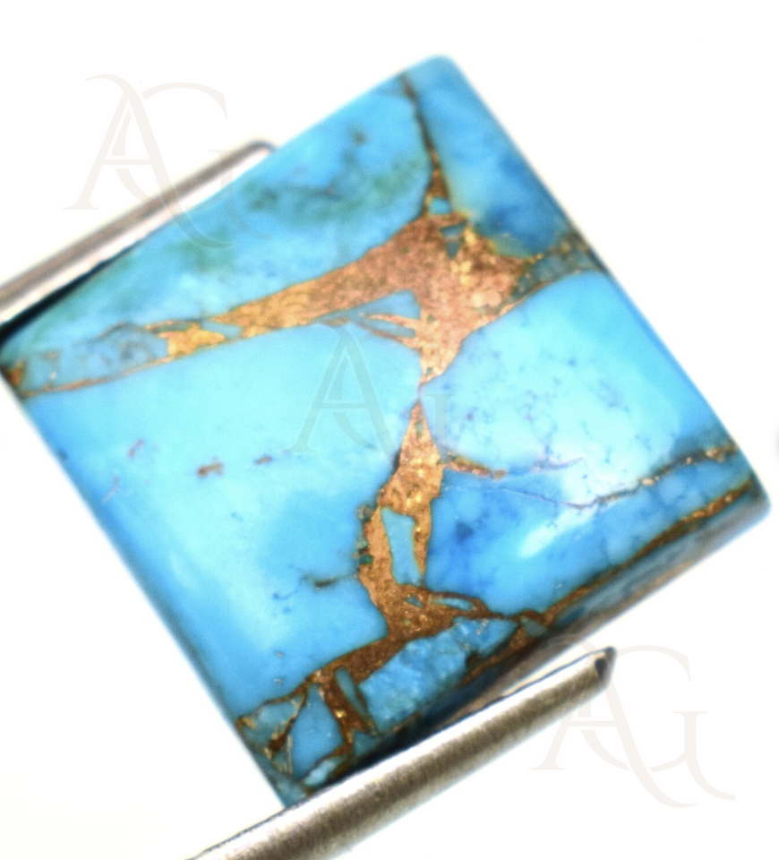 Natural Blue Copper Turquoise Gemstone Square Shape Copper Turquoise Cabochon Flat Back For Jewelry Making