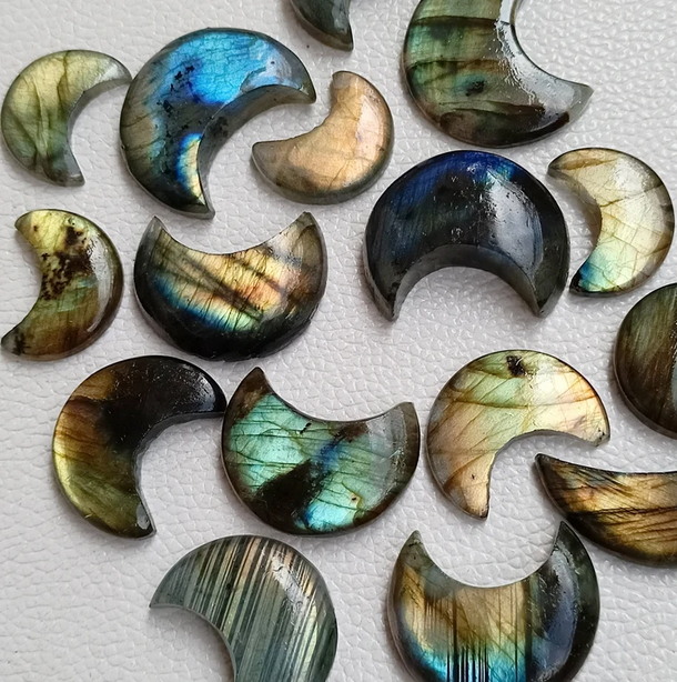 Natural Blue Fiery Labradorite Crescent Moon Shape Smooth Cabochon Gemstone for Jewelry Making in Various Sizes DIY Gemstone