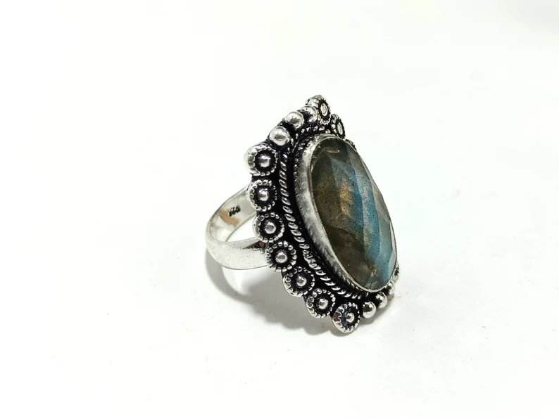 Natural Blue Fire Labradorite Cushion Cut 925 Solid Sterling Silver Gemstone Mens And Women handmade Ring Signet Ring Wholesale
