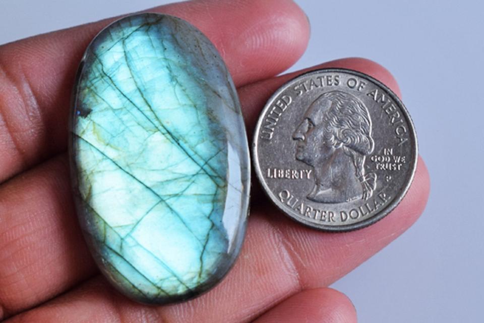 Natural Blue Flashy Fire Labradorite Cabochon Flat Back Pendant 42x25x7 MM Oval Cut for Jewellery Making