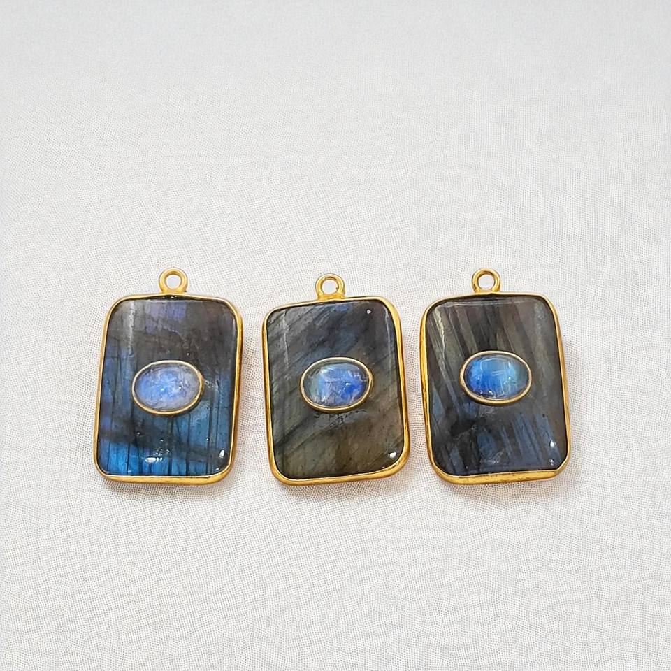 Natural Blue Labradorite Bezel Pendant Silver Gold Plated Double Stone Handmade Slice Charms Silver Jewelry Wholesale Supplies