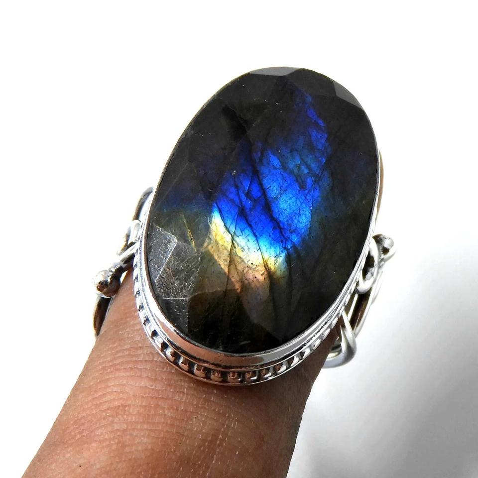 Natural Blue Labradorite Ring 925 Sterling Silver Handmade Labradorite Gemstone Women Jewelry Wedding Ring Gift For Women