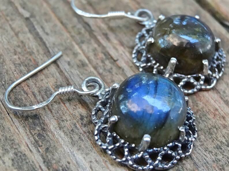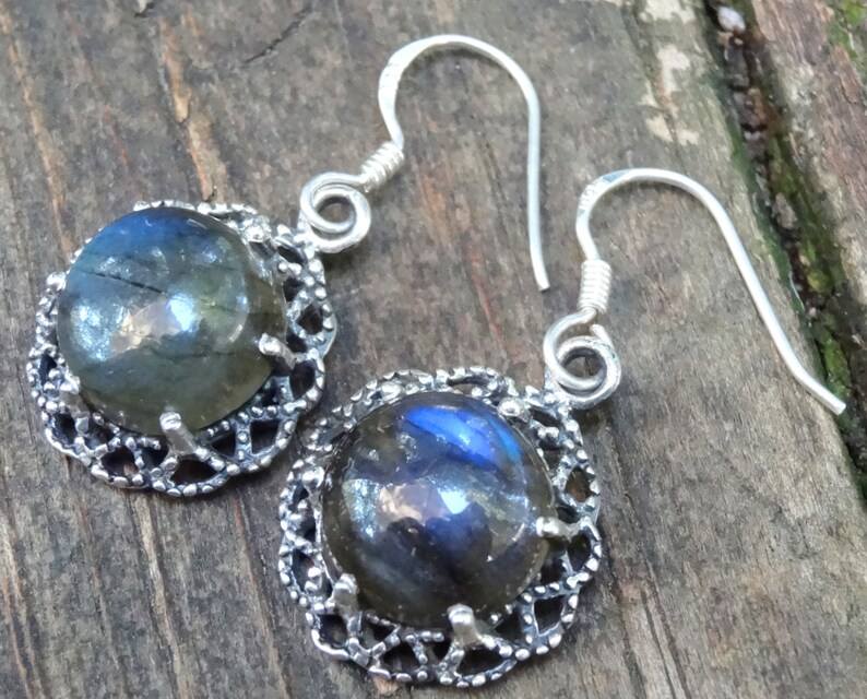 Natural Blue Labradorite Dangle Earrings Genuine Gemstone 925 Sterling Silver Oval Cut Bezel Setting Statement Pieces for