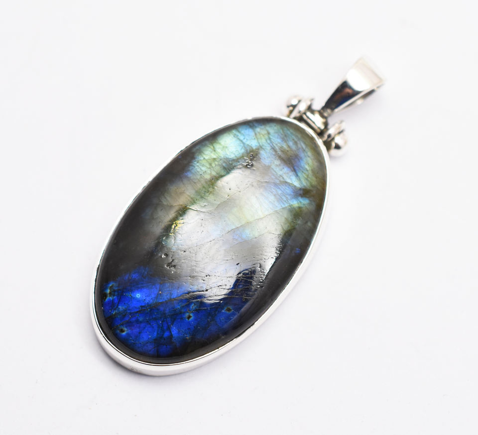 Natural Blue Oval Labradorite Pendant 92.5 Sterling Silver ( Wholesale ) Blue Fire Pure Silver Pendant Christmas Gift