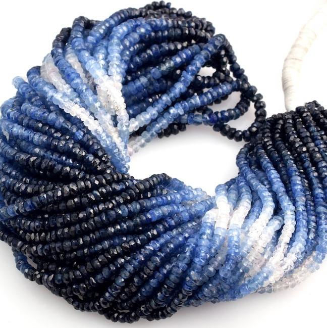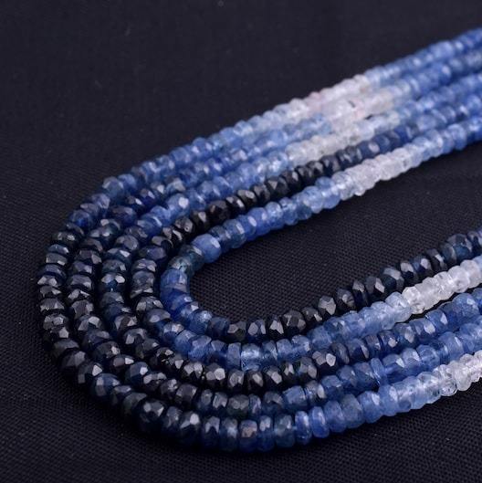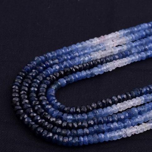 Natural Blue Sapphire Faceted Rondelle Beads For Jewelry Making 4-5mm Precious Shaded Sapphire Gemstone Loose Beads Bulk Price