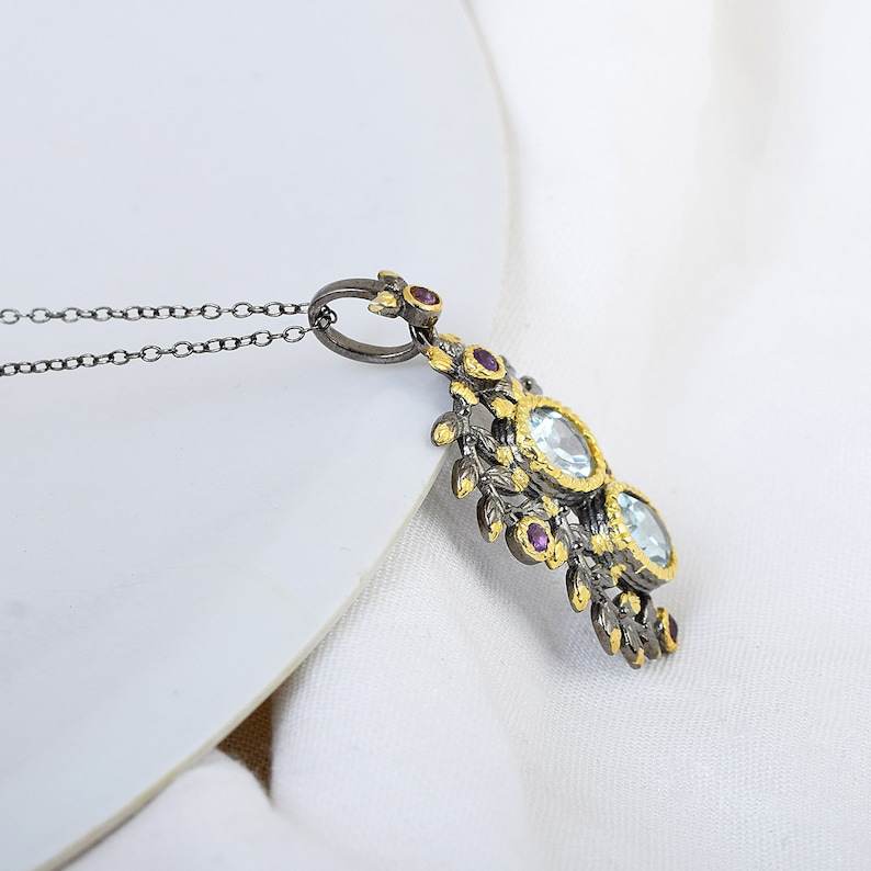 Natural Blue Topaz Amethyst Pendant 925 Silver Chain Necklace Gold Plated Leaf Pendant Multi Gemstone Gift For Wife