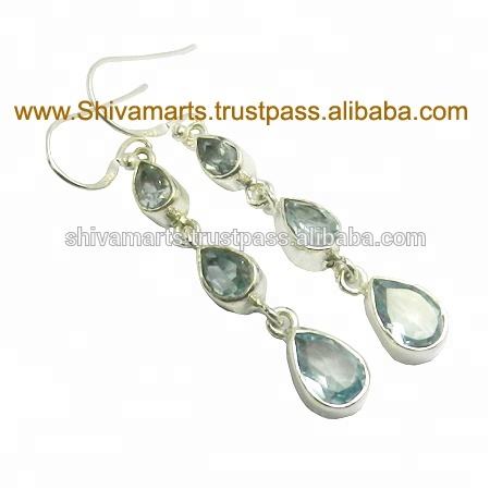 Natural Blue Topaz Gemstone Earring 925 Sterling Silver Jewelry Earrings Indian Wholesale Jewelry