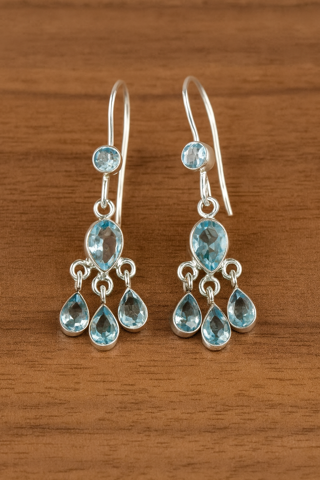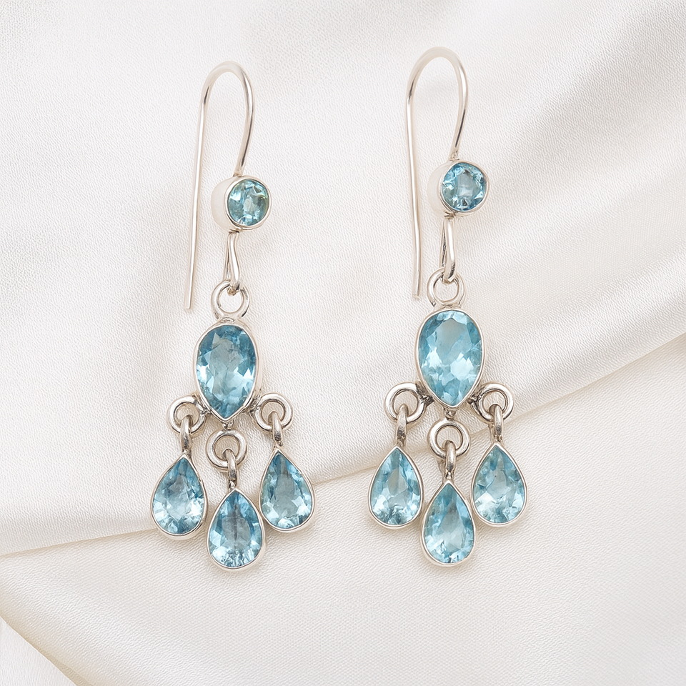 Blue Topaz Chandelier Dangle Earrings