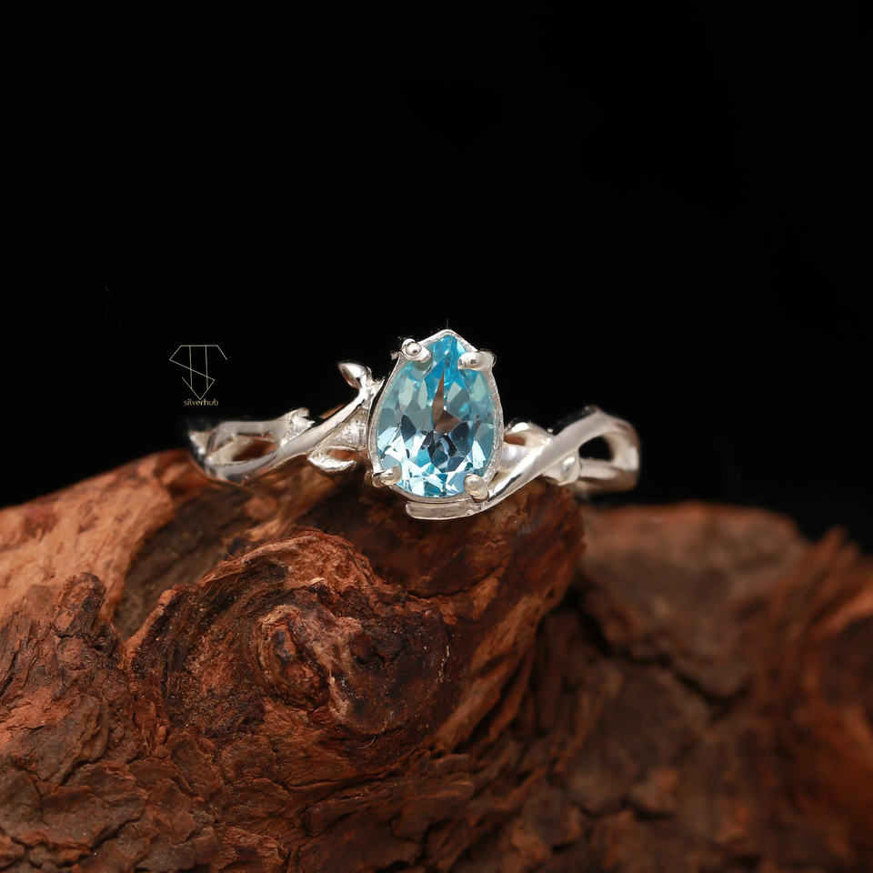 Keyword:blue topaz Natural Gemstone Handmade Ring Statement Jewelry