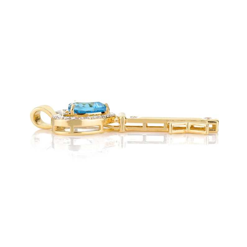 Natural Blue Topaz Pendant Necklace 925 Sterling Silver 14K Gold Plated Key Heart Charm Gift