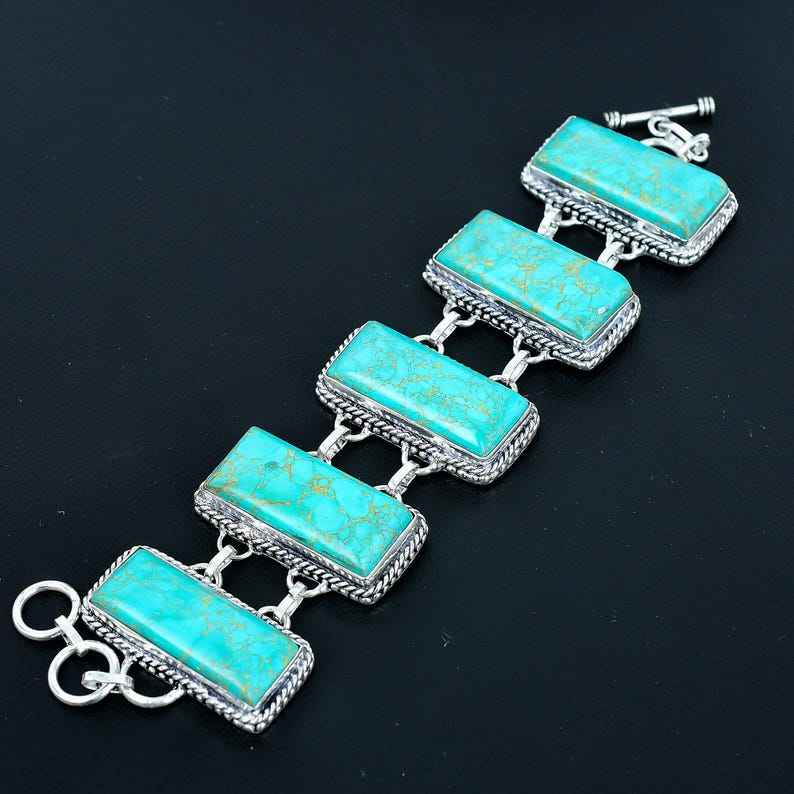 Natural Blue Turquoise Charm Bracelet Handmade 925 Sterling Silver Luxury GIA Certified Rose Gold Plated Unique Gift for Her