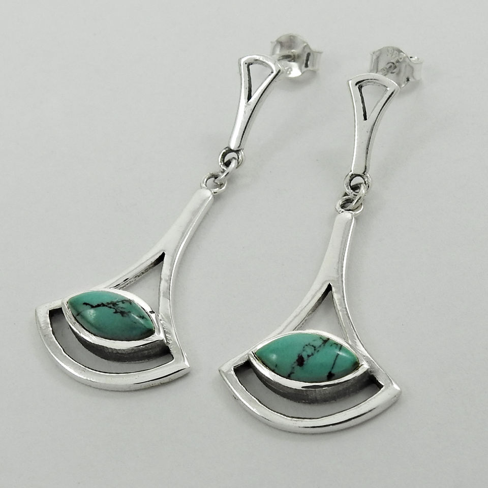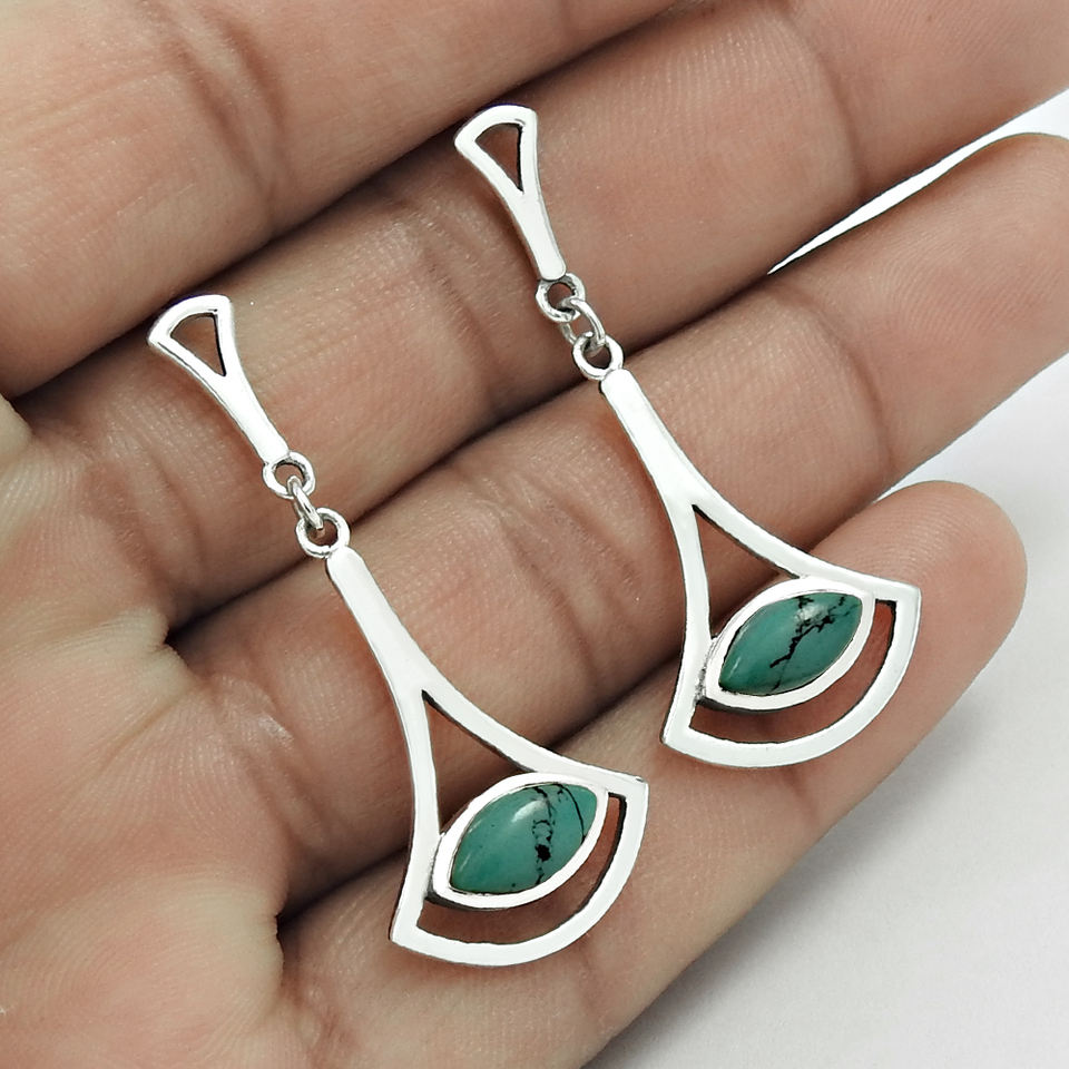 Natural Blue Turquoise Gemstone 925 Sterling Silver Handmade Vintage Antique Silver Stud Earrings Jewelry for Women Wholesale