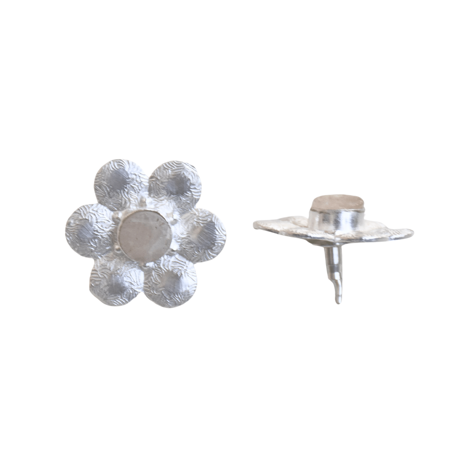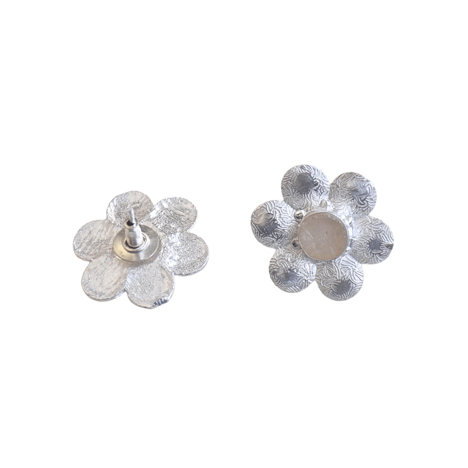 Rose Quartz Floral Studs Silver Plated