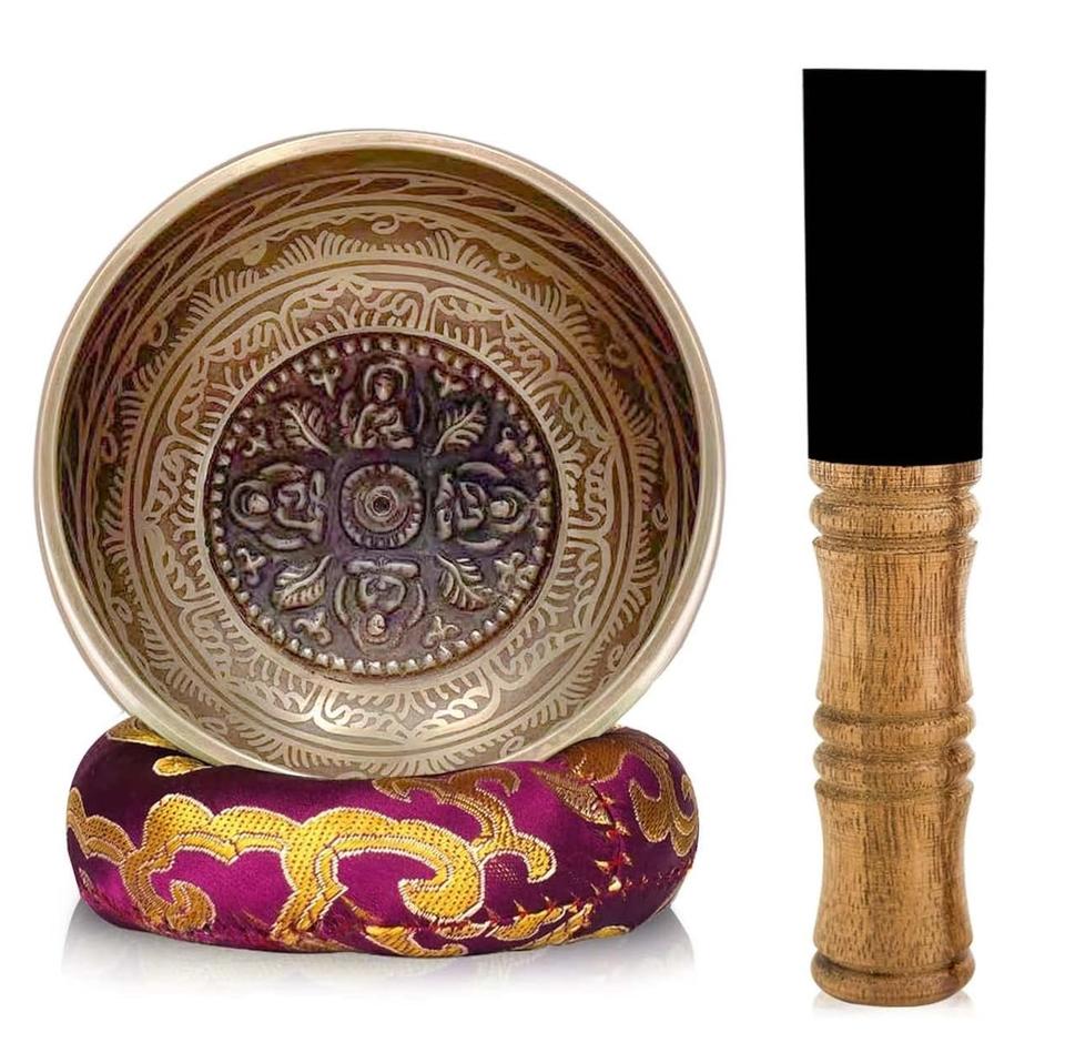 Natural Brass Nepal Singing Bowl Set Include the Stick and Cushion for Meditation Yoga Bowl with Mallet & Cushion