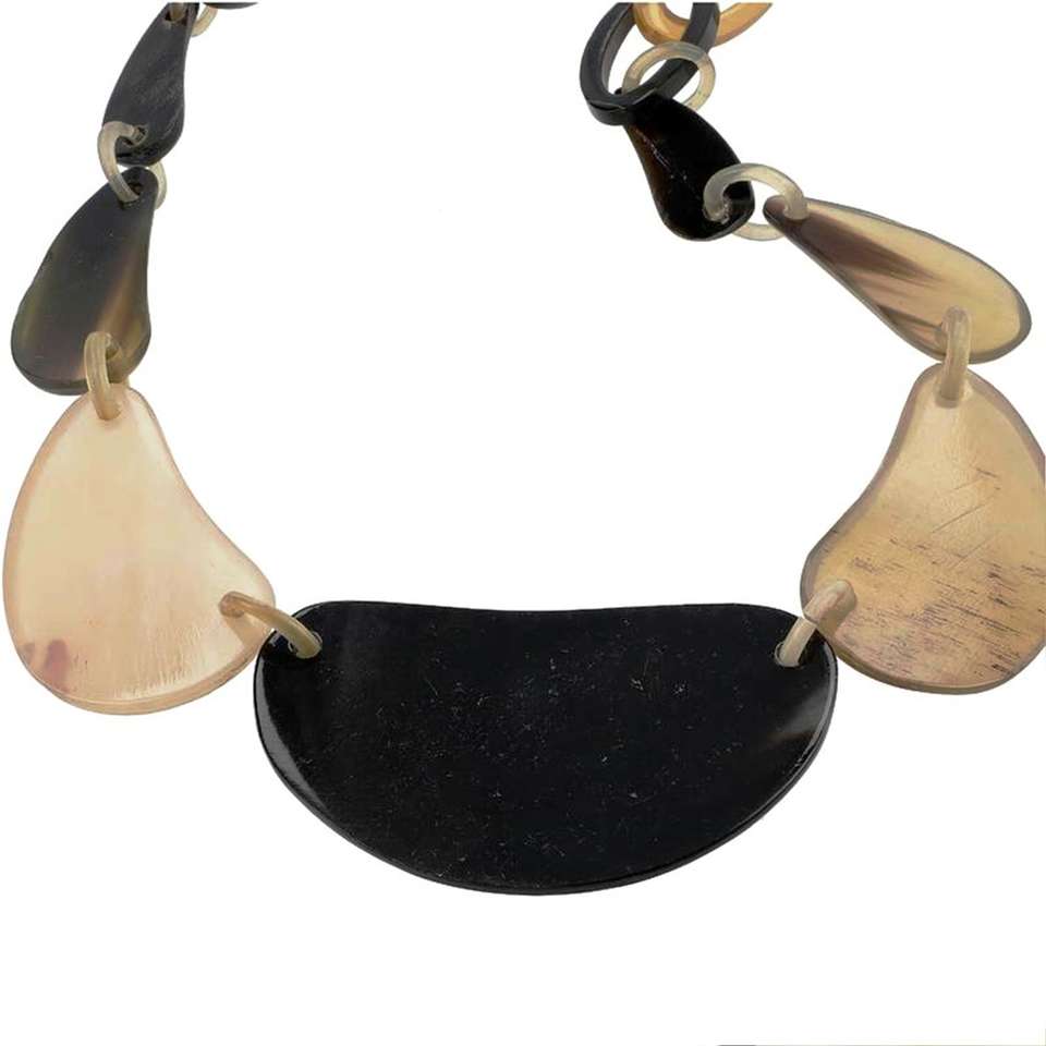 Natural Brown & Black Genuine Buffalo Horn Necklace Handmade Modern Style Trapezium Shaped Personal Gift Set