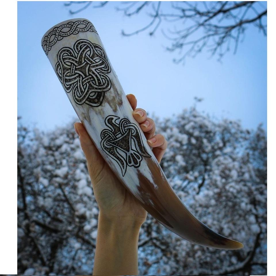 Natural Buffalo Drinking Horn Viking Drinking Horn Carved Antique Viking Drinking Cow Horn Home Decoration Premium