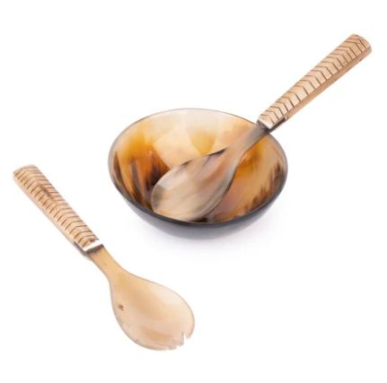 Natural Buffalo Horn 5 inches Serving bowl with Spoon and Fork set Horn Bowl Handcrafted Small Serving Bowl Vintage Home Decor