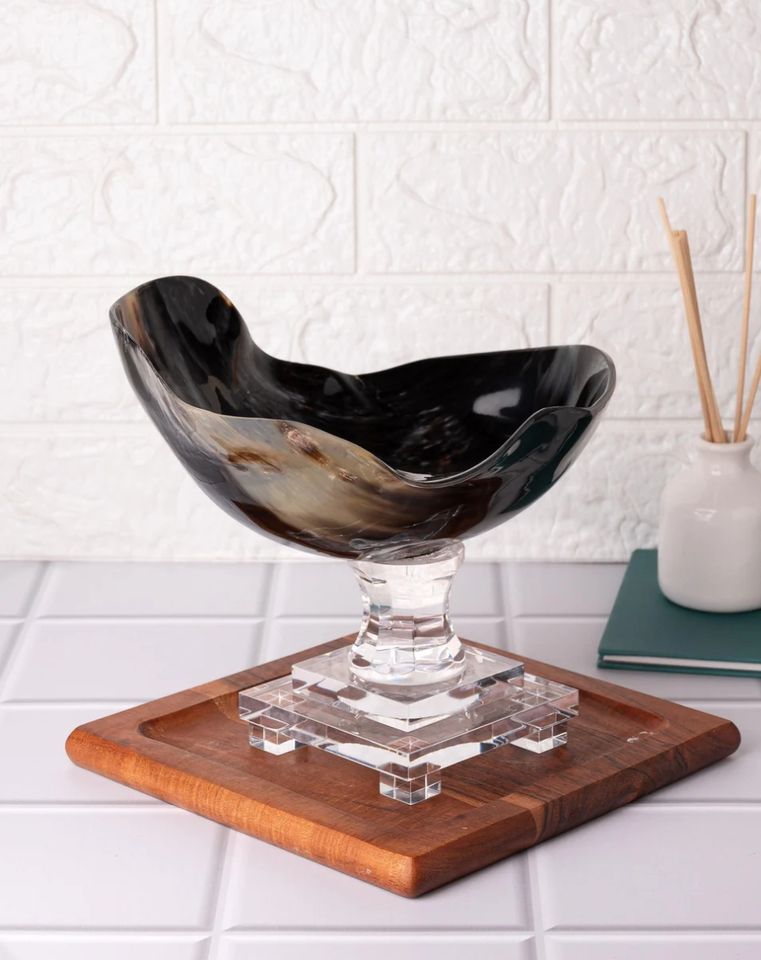 Natural Buffalo Horn Bowl on Acrylic Stand Decorative Showpiece home decoration farmhouse decor perfect for gifting