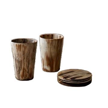 Natural Buffalo Horn Coaster Custom 4 Pcs Round Coasters Stylish Luxury Ox Horns Wholesale Coasters Mats & Non slip coaster Pads