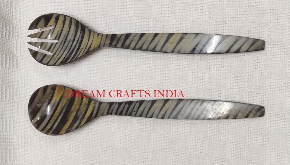 Natural Buffalo Horn Salad Server Set High Quality Light Weighted Kitchen Accessories Serving Spoon and Fork for Catering Home